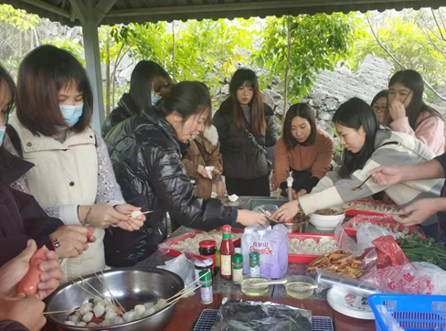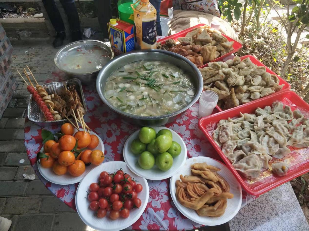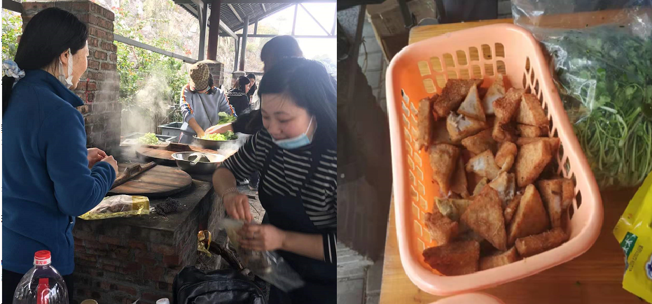 怀着激动、兴奋的心情到达生态园,大家进入烧烤区后便按着分组开始行动:“占山头”——选择烧烤亭和大锅灶。接着就是按照预先分配好的工作任务,各人撸起袖子,有条不紊地展开活动。有的包饺子,有的洗菜切菜,有的炸芋头甜饺,还有当场放起歌的,干活娱乐两不误,一派热火朝天的架势,气氛正好。