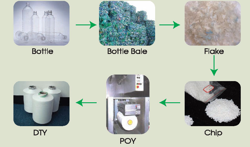 环保再生纤维是以保特瓶为原料,经过粉碎、清洗、加热熔融、抽丝及假捻加工成服饰用纱、是对地球生态环保之素材。